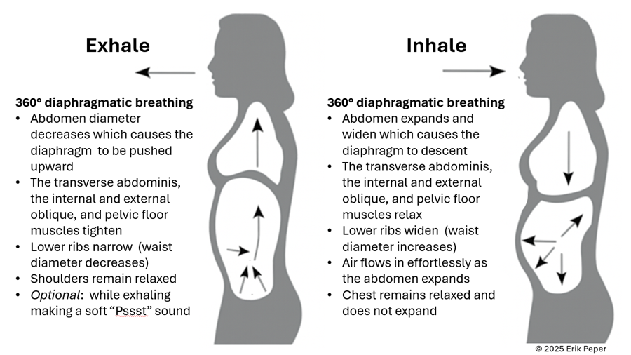 Peper, E., Harvey, R., Chen, S., & Heinz, N. (2025). Practicing diaphragmatic breathing reduces menstrual symptoms both during in-person and synchronous online teaching. Applied Psychophysiology and Biofeedback. Published online: 25 October 2025. https://rdcu.be/eMJqt https://doi.org/10.1007/s10484-025-09745-7