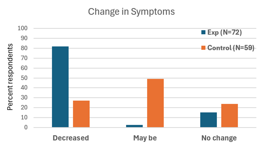 Figure 4. Change in symptoms after practicing a sequential relaxation and breathing techniques for four weeks.